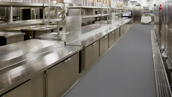 Safetred Universal R11 is our classic heterogeneous vinyl safety flooring with embedded anti-slip particles that ensures R11 slip-resistance throughout its lifespan.This safety floor is ideal for areas with frequent moisture (commercial kitchens, hospitals or stores... ). It features our Tektanium surface protection for enhanced stain resistance and easier maintenance, and the classic sparkling design in a matt finish.